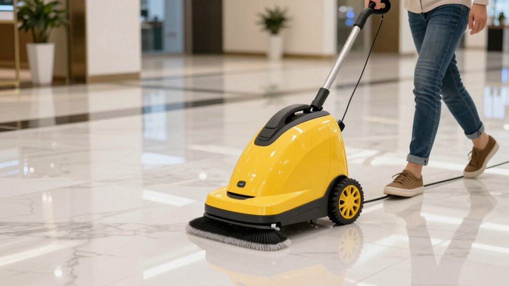 You’ll be surprised to learn that cordless floor scrubbers are versatile enough to handle over 90% of common floor types. They’re designed for broad surface suitability, including tile, vinyl, concrete, and hardwood. However, for delicate surfaces like hardwood or certain carpets, you should check compatibility first. This guarantees optimum cleaning without damage, making cordless scrubbers a flexible choice for diverse environments.