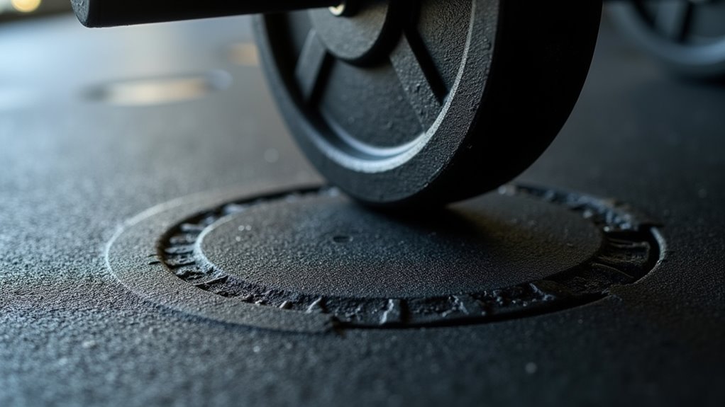 To prevent damage, it’s vital to understand the limits of your rubber gym floors. Most commercial-grade rubber flooring is rated to withstand certain weights and impact levels, but exceeding those limits accelerates deterioration. If you’re unsure, consult the manufacturer’s specifications or guidelines. Additionally, consider using protective mats or platforms under heavy equipment to distribute weight more evenly and reduce direct impact. This approach helps preserve flooring durability while still allowing you to use your gym equipment safely and effectively.