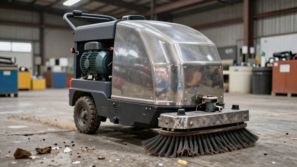 Did you know that proper safety features can reduce accidents by up to 60%? Heavy-duty scrubbers include essential safety protocols like emergency stop buttons, safety alarms, and automatic shut-off systems. Operator training is vital, ensuring users understand these features and safe operation procedures. These safety features protect both the operator and your facility, making work safer and more efficient. Always follow safety protocols and provide proper training to maximize safety benefits.