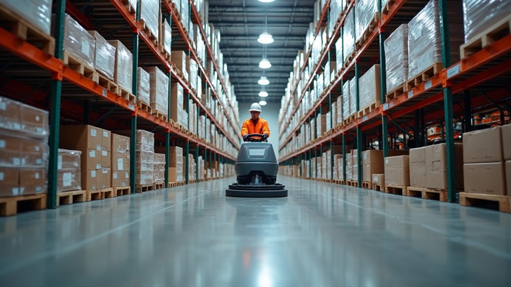 Stick to this cleaning schedule, and your warehouse aisles will stay spotless and safe. But don’t get too comfortable—dirt and grime are always lurking, waiting for the right moment to return. Are you prepared to stay one step ahead? Regular scrubber care isn’t just maintenance; it’s your secret weapon. Keep up with the routine, and you’ll uncover surprises that guarantee your warehouse remains efficient, clean, and ready for anything—just around the corner.