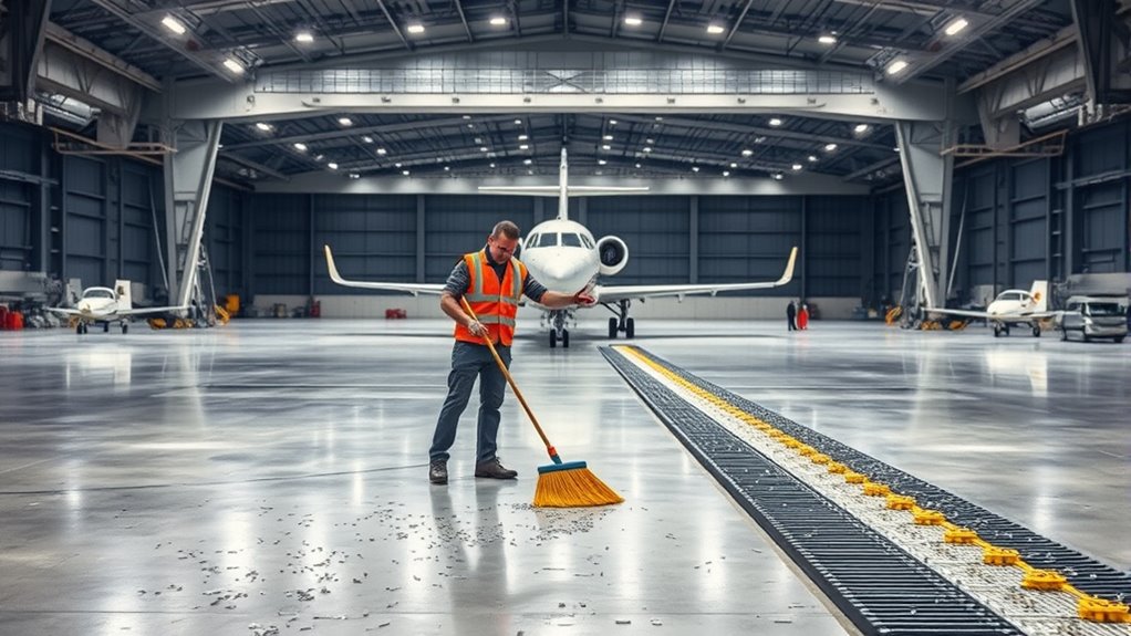 Proper sweeping with magnetic bars enhances aircraft safety and reduces FOD risks in hangars.