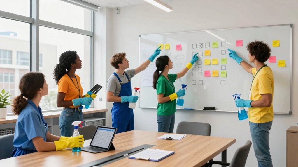 Feedback from team members can considerably improve your cleaning checklist by enhancing team communication and enabling checklist customization. When team members share their experiences, they highlight what’s working and what’s not, allowing you to adjust the checklist for clarity and efficiency. This ongoing input makes the checklist more practical and tailored to each site’s needs, ultimately leading to better cleaning standards and more cohesive team efforts.
