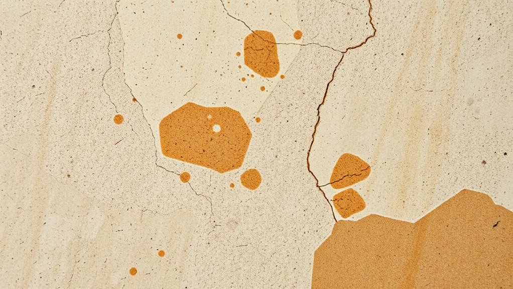 You’ll notice porous damage when your natural stone looks uneven or feels crumbly, indicating it’s absorbed moisture or stains. Surface etching shows up as dull, scratched areas where the stone’s protective surface has been compromised, often from acidic cleaners. If you see these signs, act quickly by avoiding harsh chemicals, sealing the surface, and consulting a professional to prevent further damage and maintain your stone’s beauty.