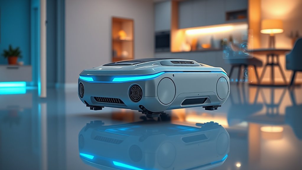 Have you ever wondered how autonomous cleaning robots effortlessly keep your floors spotless? The secret lies in advanced robotic integration and sophisticated sensor technology that work seamlessly together. As these robots become smarter, they’re increasingly capable of maneuvering complex environments and adapting to changing conditions. Robotic integration involves combining hardware components—such as motors, brushes, and wheels—with software that allows the robot to communicate and coordinate. This integration ensures smooth operations, enabling the robot to perform cleaning tasks efficiently without human intervention. Sensor technology plays a vital role here, providing real-time data that guides the robot’s movements and decision-making processes. Modern autonomous cleaning robots utilize an array of sensors, including lidar, cameras, infrared, and ultrasonic detectors. These sensors create a detailed map of your space, allowing the robot to recognize obstacles, furniture, and even dirtier spots that need extra attention. This mapping capability is essential for avoiding collisions and optimizing coverage. As sensor technology advances, these robots become better at understanding their environment, even in cluttered or dynamic spaces. For example, lidar sensors generate precise 3D maps of a room, enabling the robot to plan efficient cleaning routes while avoiding furniture and pets. Additionally, the integration of advanced sensor systems will lead to even more precise obstacle detection and navigation capabilities, further enhancing their effectiveness. Future trends point toward even more sophisticated sensor systems that can detect specific types of debris or dirt levels, adjusting cleaning intensity accordingly. Imagine a robot that can differentiate between dust, pet hair, and larger debris, then tailor its cleaning approach for each. Such precision will be made possible by integrating sensor technology with AI algorithms, making the cleaning process more effective and resource-efficient. Additionally, advancements in robotic integration will allow these systems to connect seamlessly with smart home networks, giving you control and monitoring options through voice commands or mobile apps. As sensor technology becomes more miniaturized and energy-efficient, robots will be able to operate longer on a single charge and perform more complex tasks without sacrificing speed or accuracy. These improvements will also enable the robots to better coordinate with other smart devices in your home, creating a cohesive cleaning ecosystem. Enhanced robotic integration will facilitate smarter task scheduling, obstacle detection, and even predictive maintenance, reducing downtime and extending the lifespan of your cleaning robot. With these advancements, autonomous cleaning robots will become more autonomous, adaptable, and capable of maintaining your home with minimal input from you.
