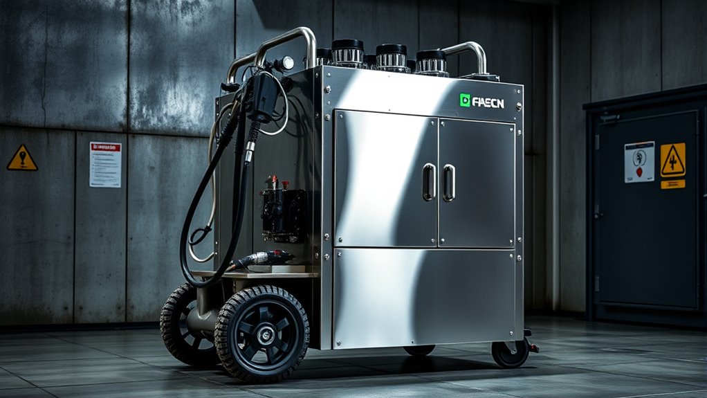 If your cleaning operations take place in environments with flammable gases or dust, using ATEX or explosion-proof cleaning machines isn’t just recommended—it’s indispensable. These specialized machines are designed to prevent ignition sources that could trigger explosions, making them pivotal for maintaining safety standards in hazardous areas. When selecting equipment for such environments, dust mitigation becomes a top priority. Dust particles, even when seemingly harmless, can accumulate and pose a significant explosion risk if they become airborne and ignite. Explosion-proof cleaning machines are engineered to contain dust and prevent it from dispersing into the environment, reducing the chance of ignition and guaranteeing safer operations. Additionally, dust mitigation features are integral to these machines, actively reducing dust accumulation and dispersal during cleaning processes. Safety certifications play an essential role in verifying that these machines meet strict industry standards. Certifications such as ATEX (ATmosphères EXplosibles) indicate compliance with European Union directives that specify the safety requirements for equipment used in explosive atmospheres. These certifications give you confidence that the cleaning machines have undergone rigorous testing and adhere to necessary safety protocols. Without proper safety certifications, you risk using equipment that may not be adequately protected against sparks, static, or heat, which could lead to catastrophic failures in hazardous environments. Explosion-proof cleaning machines are built with durable, intrinsically safe components. They incorporate features like sealed motors, spark-resistant materials, and explosion-proof enclosures to contain any sparks or heat that might originate during operation. This design minimizes the risk of igniting dust clouds or flammable gases. Additionally, these machines often include grounding and static dissipation systems to prevent static buildup, which could otherwise serve as an ignition source. Such features are essential for effective dust mitigation, ensuring that dust doesn’t accumulate on or inside the equipment, which could compromise safety over time. Investing in the right equipment means paying attention to both the technical specifications and the safety certifications. Properly certified explosion-proof cleaning machines help you stay compliant with health and safety regulations, avoid costly shutdowns, and protect your personnel. They enable you to perform thorough cleaning without risking an explosion, even in the most challenging environments. By prioritizing dust mitigation and choosing machines with recognized safety certifications, you guarantee that your cleaning operations are both efficient and safe, safeguarding your facility, staff, and assets from avoidable hazards.