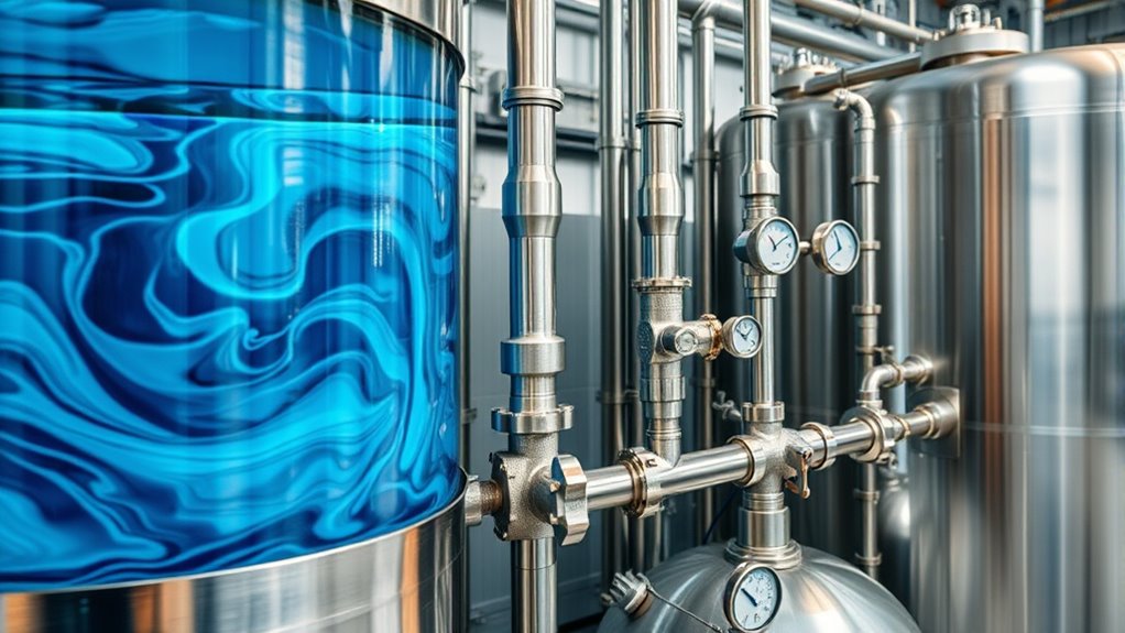 Implementing water recycling and greywater systems in scrubbers can markedly improve industrial efficiency by reducing freshwater use and minimizing wastewater discharge. You can treat wastewater or greywater for reuse in scrubber operations, lowering operational costs and supporting sustainability goals. Proper systems filter, disinfect, and manage water flow to guarantee safety and compliance. By integrating these solutions, you not only conserve resources but also enhance environmental responsibility—exploring further reveals how to optimize these systems effectively.