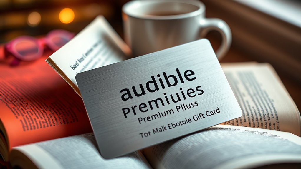 If you want to surprise any book lover, the best choice is an Audible Premium Plus gift membership. It offers access to over 600,000 titles, including audiobooks, podcasts, and exclusive content, all adaptable for the recipient’s tastes. You can choose a flexible gift duration and delivery method, making it perfect for any occasion. Keep watching to discover how to pick the perfect option and guarantee your gift truly delights.