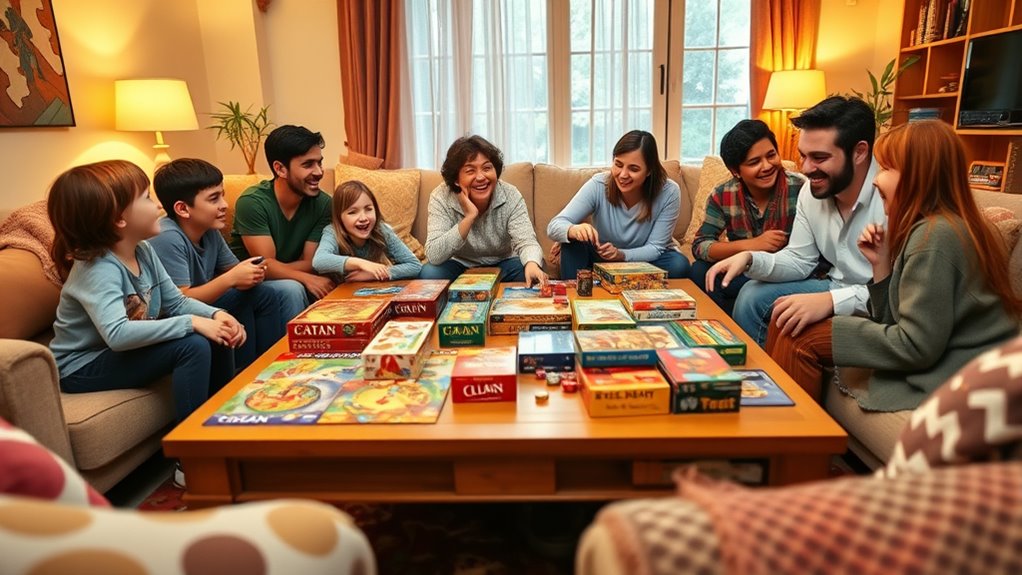 Imagine your family gathered around a lively campfire, each voice adding warmth and color to the flames. To keep everyone involved, I encourage rotating roles, asking open-ended questions, and choosing games that suit different ages and interests. I also make sure to cheer for each player’s efforts, creating a contagious energy. This way, everyone feels seen and excited to stay engaged, turning game night into a memorable, inclusive adventure.