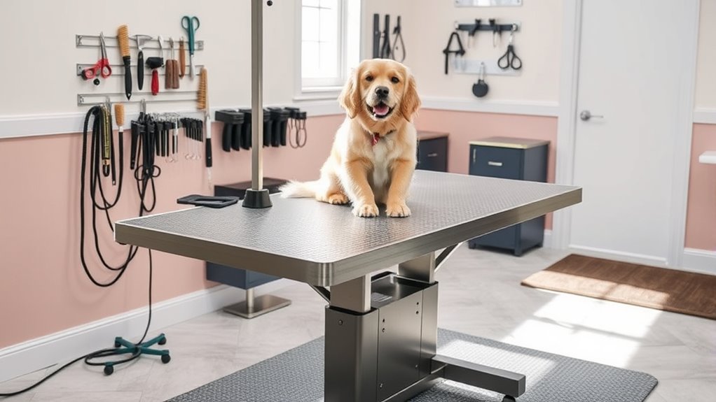 Choosing the right grooming table can make all the difference in keeping your pet stress-free. Did you know that grooming reduces anxiety in pets by 60%? Investing in a quality table with adjustable features not only makes grooming easier but also enhances your pet’s comfort. So, consider their size, weight, and needs carefully. With the right setup, grooming becomes a bonding experience rather than a chore—making both your lives happier and healthier.