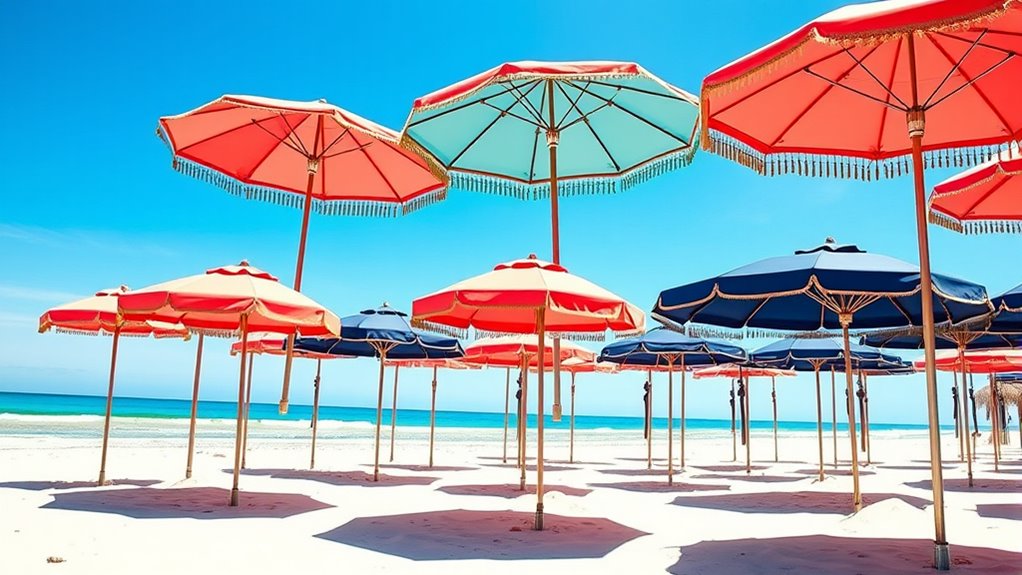 Choosing the right high-end beach umbrella is like finding a trusted companion for sun-filled adventures; it protects, endures, and adds style to your day. With options that blend durability with elegance, you’ll enjoy countless carefree moments under the perfect shade. Remember, the best umbrella isn’t just about looks—it’s about standing strong against the wind and sun. So go ahead, pick one that feels like a breeze—your perfect beach day awaits just beneath its canopy.