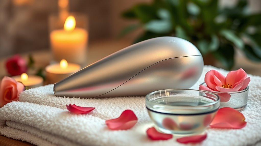 Beyond ergonomic design, considering additional features can substantially enhance the effectiveness and convenience of a high-end facial cleansing device. Features like thermal massage, LED therapy, and ion export/import can boost skincare benefits, making treatments more all-encompassing. Multiple vibration or rotation modes with adjustable intensity allow me to customize my cleansing and exfoliation routines for different skin needs. Automatic foaming, interchangeable brush heads, and built-in timers help optimize cleaning efficiency and simplify my routine. Smart technology, such as memory functions that recall preferred settings or app compatibility, adds a personalized touch. Additionally, waterproof design, long-lasting rechargeable batteries, and accessories like travel cases or stands improve usability and versatility. These features ensure I get a spa-like experience at home, tailored to my skin’s unique requirements.