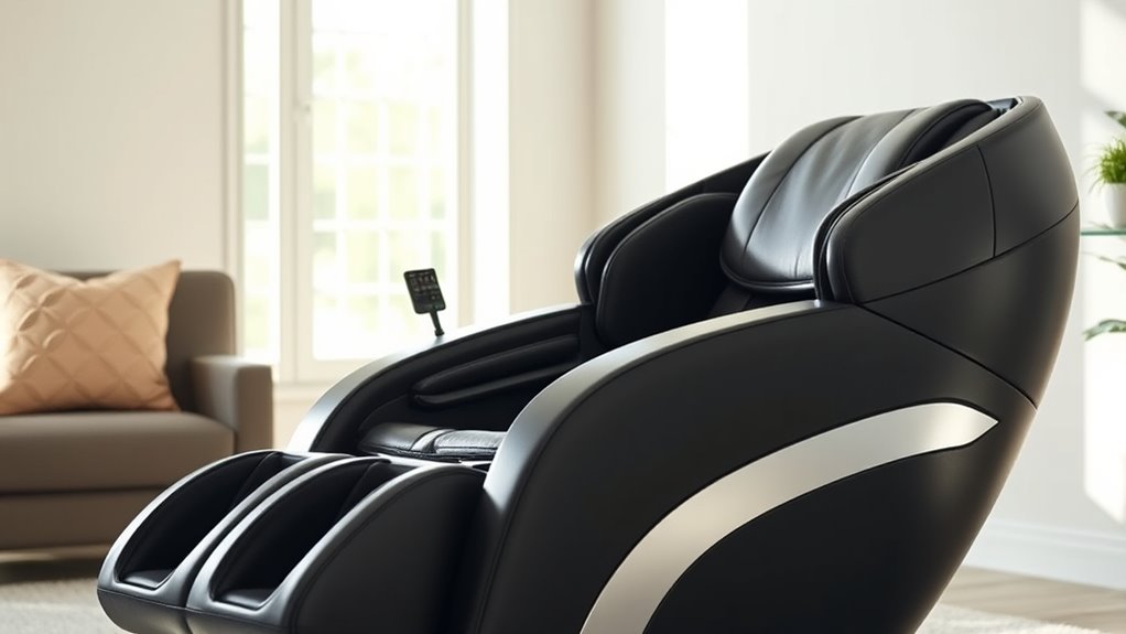 Choosing a high-end massage chair involves more than just considering its features; paying close attention to price and warranty coverage is essential to making a wise investment. These chairs typically range from $2,000 to over $10,000, reflecting their advanced features and premium materials. A solid warranty, usually lasting 3 to 5 years, can save you money on repairs and give peace of mind. Look for models that offer in-home service, replacement parts, and extended warranties to maximize value. Many luxury chairs include multi-year plans covering mechanical, electronic, and cosmetic issues. Comparing warranty terms helps protect your investment against defects or malfunctions over time, ensuring your chair remains a reliable source of relaxation for years to come.