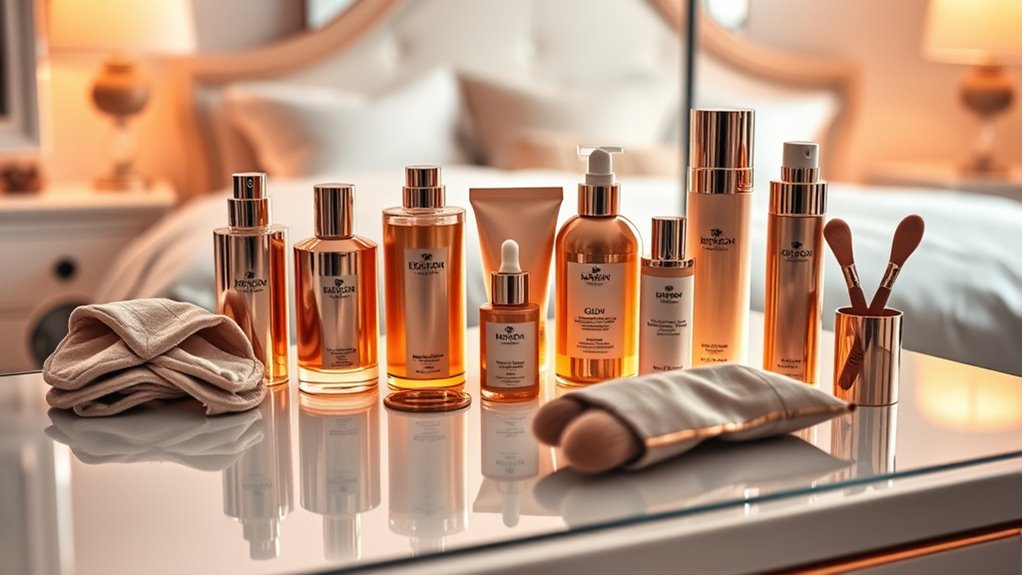 If you’re after the best high-end self-tan products that give you a flawless glow, I’ve got you covered. From long-lasting mousses and quick-developing formulas to hydrating sprays and nourishing face serums, these top picks deliver natural, streak-free results with minimal effort. Plus, with professional tools like brushes and mitts, you can achieve a perfect, even tan every time. Stick around—there’s more to discover about these luxe tanning essentials.