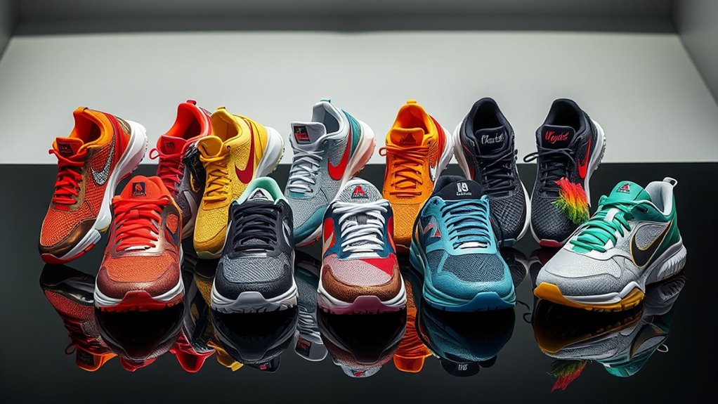 Limited edition athletic shoes stand out not just for their unique designs but also for their potential to increase in value over time. Their exclusivity, often achieved through collaborations or special materials, makes them more desirable and sometimes more expensive than regular shoes. Since these shoes are produced in limited quantities, their rarity can boost collectability and resale value. When choosing limited editions, I consider how the design, branding, and materials contribute to their perceived worth. It’s also smart to think about their investment potential or status symbol; owning rare kicks can elevate your sneaker game and showcase your unique style. Ultimately, understanding the factors that drive their value helps me select shoes that are both stylish and potentially rewarding investments.