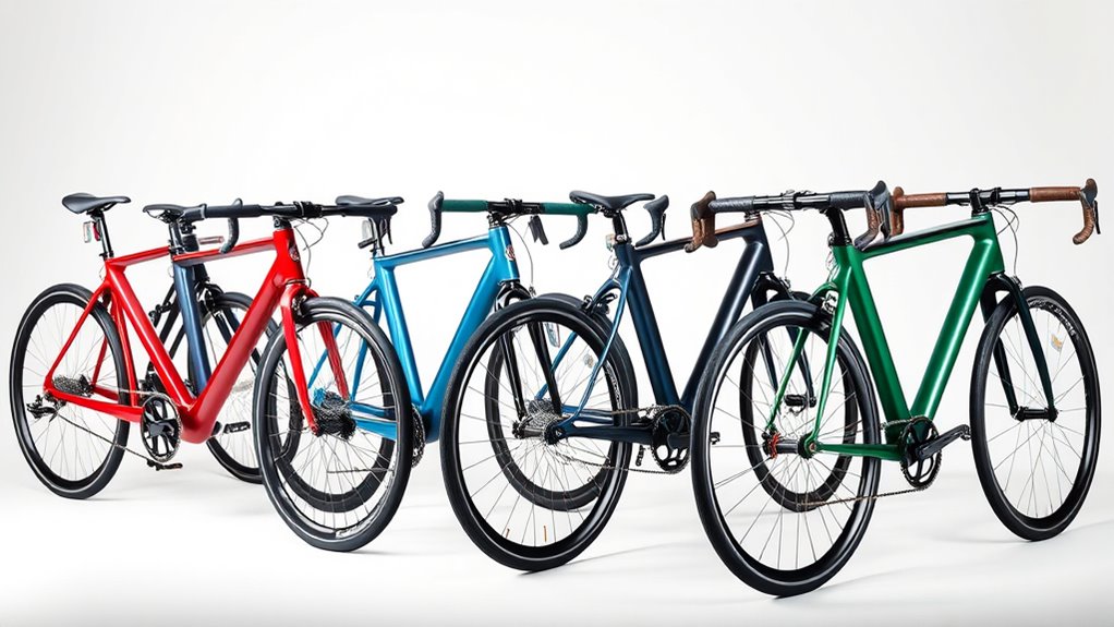 Choosing a premium bicycle means paying close attention to the materials and construction methods that guarantee durability and performance. High-quality bikes typically use aluminum, carbon steel, or high-carbon steel, balancing strength with lightweight design. Frame construction techniques like TIG welding and reinforced joints ensure the bike’s longevity and resilience under demanding conditions. Superior build quality is also reflected in components such as sealed bearing hubs, machined head tubes, and precise derailleur systems, which enhance performance and reduce maintenance. Tires are designed for all-terrain use, featuring reinforced sidewalls and puncture resistance to handle varied surfaces. Additionally, corrosion-resistant finishes like powder coating or multi-layer paint safeguard both aesthetic appeal and structural integrity over time, ensuring your bike remains reliable and stylish for years to come.