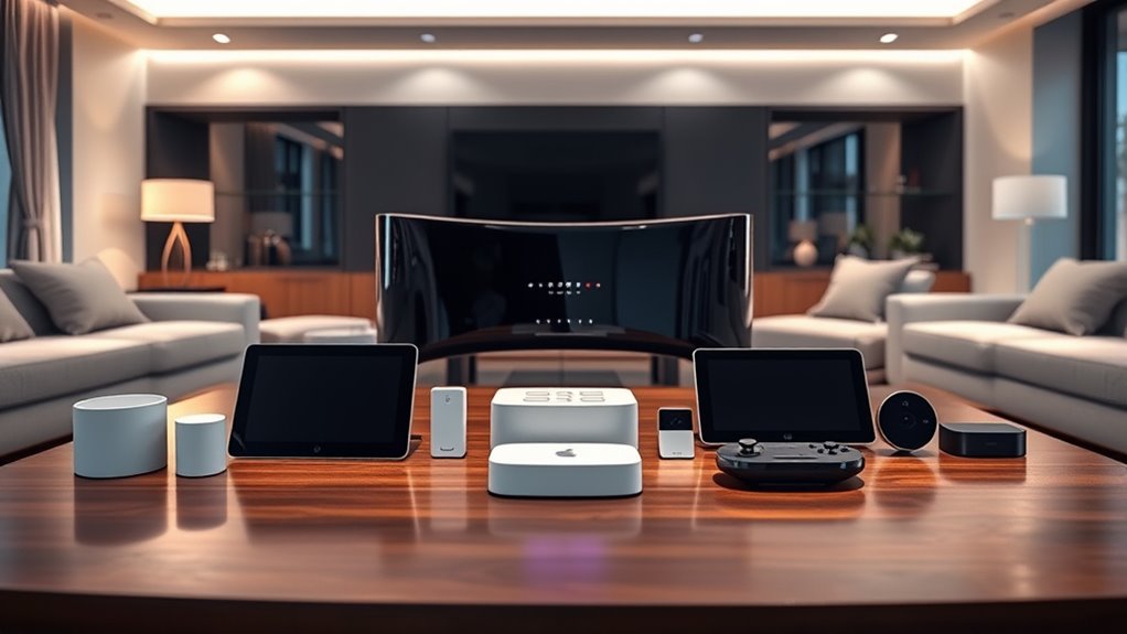 If you’re looking for the 15 best premium home automation hubs of 2025, I can help you find options that support multiple protocols like Z-Wave, Zigbee, Wi-Fi, and Matter. These hubs offer extensive device compatibility, local control, and robust security features. Whether you want seamless automation, energy monitoring, or smart security, there’s a solution for you. Keep exploring to discover the top picks that can make your smart home truly effortless.
