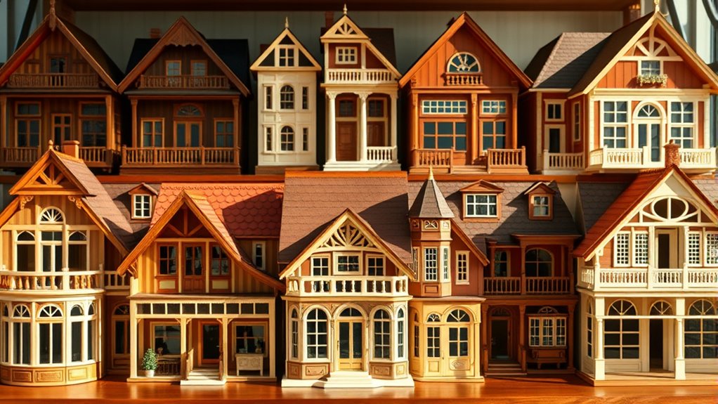 If you’re searching for the 15 best premium wooden dollhouse sets that blend elegant design with playful charm, I’ve got you covered. These sets feature high-quality, eco-friendly materials like beech and birch, with realistic, functional furniture and accessories that spark imagination. They’re designed for durability, safety, and compatibility with various doll sizes. Whether you want detailed rooms, stylish furniture, or versatile features, there’s a set for every age and preference. Keep exploring to discover more about these charming collections.