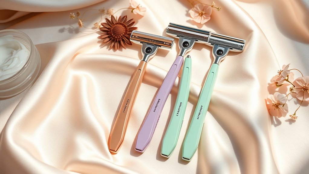 If you’re looking for the best razors for women that give a smooth, comfortable shave, I recommend options like the Schick Hydro Silk Ultra Sensitive and Gillette Venus Sensitive razors for gentle, irritation-free results. The Amazon Basics set offers great value, while the Venus Bikini and Deluxe Razors excel for precision and comfort. To find the perfect fit for your skin and needs, explore these top choices further for tips on selecting the ideal razor.