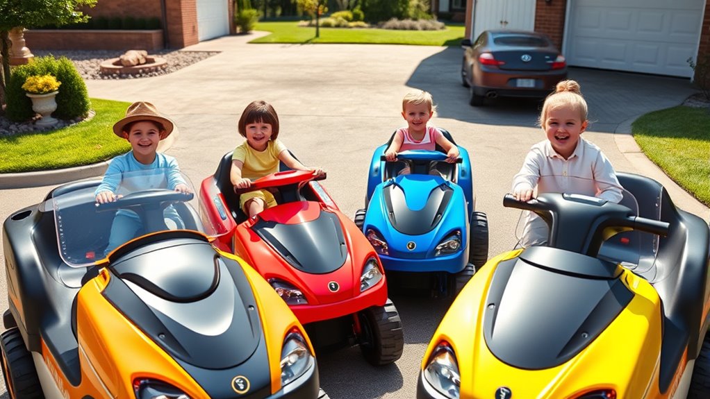If you’re looking for the best ride-on sweeper seats for kids in 2025, I recommend checking options that combine safety, comfort, and fun. From adjustable seats with safety belts to foam cushions designed for long hours of play, the top picks focus on durability and easy installation. Some models feature armrests, micro switches, and water-resistant materials, making them perfect for active kids. If you keep exploring, you’ll find even more great choices tailored for your little cleaner enthusiasts.