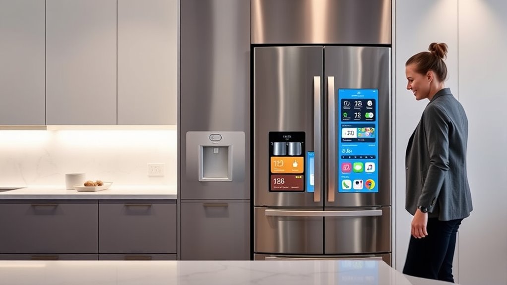 Think of the data on smart refrigerators as a treasure chest—its security depends on the lock. I find that most top models use robust encryption and regular updates, making them quite secure. Yet, no system is infallible, so it’s wise to keep software current and use strong, unique passwords. This way, I protect my info like a knight guarding a fortress, ensuring my smart fridge stays safe from intruders.