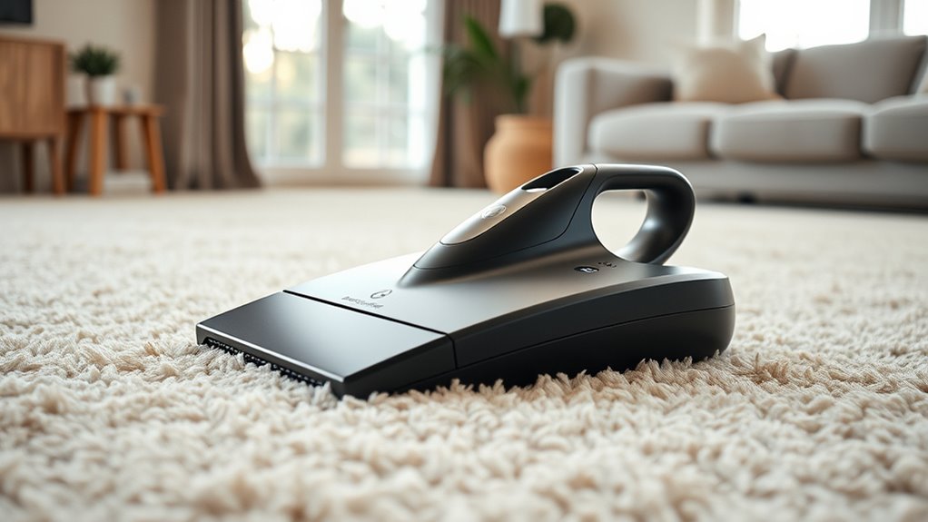 Silent vacuums usually don’t require special maintenance or filters, but I recommend checking the user manual to be sure. Most have standard HEPA or foam filters that need regular cleaning or replacing to keep performance ideal. I make it a habit to clean or swap filters every few months, depending on usage, to ensure quiet operation and maintain suction power. It’s simple and keeps my vacuum running smoothly.